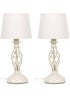 ValueLights Memphis Pair of Painted Cream Table Lamp & Candle