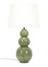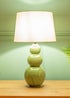 Introduce elegance to your living space with this green stacked ball table lamp. Featuring a detailed ceramic base with a fabric tapered lampshade in a white finish. This on-trend lamp is perfect for transforming your room in seconds. The in-line rocker switch provides convenient control, making it easy to illuminate your space. Requires 1 x LED 4W SES E14 bulb (not included).