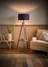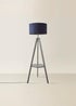ValueLights Morrigan Grey Wood Tripod Floor Lamp Navy Shade (147cm x 45cm)