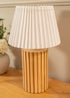 Learn moreTransform your room easily with this elegantly crafted lamp. Featuring a wooden base with a white pleated lampshade. Whether your style is a vintage or minimalist, this lamp will fit perfectly into any room in your home. The in-line rocker switch provides convenient control, making it easy to illuminate your space. Requires 1 x LED 4W SES E14 bulb (not included).