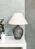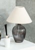 ValueLights Olivet Grey Glass Table Lamp (34cm x 25cm x 25cm)