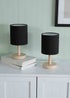A Scandi inspired lighting duo. This pair of Nelly wooden table lamps with black shades cosy up any space and are perfect for bedside tables. Requires bulb with E14 fitting