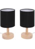ValueLights Pair of Oak Natural Table Lamp with Black Drum Shade