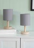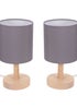 A Scandi inspired lighting duo. This pair of Nelly wooden table lamps with grey shades cosy up any space and are perfect for bedside tables. Requires bulb with E14 fitting