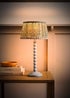 Learn moreSuper sweet, this on-trend wooden table lamp has a stacked bobbin design and is finished in a choice of pastel powder blue, rose pink or soft sage green. It's the perfect base for the pleated shade to level up your interior decor. With a floral print fabric inspired by the designs of William Morris, this cute table lamp is great for bringing living rooms to life or brightening bedrooms. There's a 1.5m cable from plug to lamp with a rocker switch, and it's also available as a floor lamp too. Bulb Required: E14