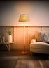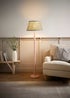 Super sweet, this on-trend wooden floor lamp has a stacked bobbin design and is finished in a pastel rose pink. It's the perfect base for the pleated shade to level up your interior decor. With a floral print fabric inspired by the designs of William Morris, this cute floor lamp is great for bringing living rooms to life or brightening bedrooms. There's a 1.8m cable from plug to lamp with a floor switch, and it's also available as a table lamp too. Bulb Required: E27