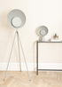 The Saffy LED floor lamp in grey is a modern floor lamp with integrated LED technology. It's got a tripod base with a two disc style shade. Complete with Integrated LED bulb.
