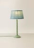 Super sweet, this on-trend wooden table lamp has a stacked bobbin design and is finished in a choice of pastel powder blue or soft sage green. It's the perfect base for the pleated shade to level up your interior decor. With a leaf print fabric inspired by the designs of William Morris, this cute table lamp is great for bringing living rooms to life or brightening bedrooms. There's a 1.5m cable from plug to lamp with a rocker switch, and it's also available as a floor lamp too. Bulb Required: E14