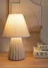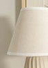 The Saskia ceramic table lamp in cream is a modern organic dream. A matte ceramic base with a textured base and a classic matching tapered shade. Perfect as bedside tables or to add a little extra glow wherever you need it. Requires bulb with E14 fitting