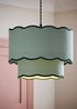 The Sloane two-tier scalloped shade brings bold curves and colour clash vibes to your ceiling. Its layered silhouette and contrasting trim create a look that’s playful yet sophisticated, perfect for adding personality to any space. Available in green, grey, navy, and pink colourways, this pendant turns everyday lighting into a design statement. Hang it in living rooms, bedrooms, or over dining tables for instant glow-up style. Bulb Required: BC B22