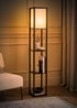 This floor lamp comes in a wooden finish with a fabric shade. Featuring three shelves and a built in lamp, making it a useful piece of furniture in any room of your home. Ideal for displaying ornaments, pictures and other decorative items. Its simple yet practical design will add a minimalist touch to your living space. Please Note: This product is flat packed and requires self assembly. Requires 1 x LED 6W ES E27 bulb (not included).