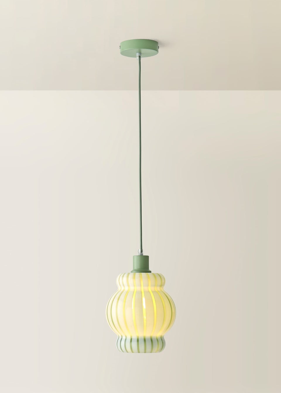 ValueLights Taffy Green Stripe Glass Pendant Ceiling Light