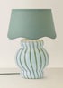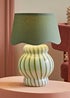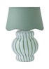 The Taffy striped glass table lamp combines playful design with coordinated detailing. Featuring a sculptural green and white striped glass base, it comes complete with a matching green fabric scalloped shade and colour-match cable for a cohesive finish. Designed to deliver both style and function, Taffy adds character and on-trend appeal to bedrooms, living spaces and hallways. Pair with other pieces from the Taffy family and let your home shine from every angle. Bulb Required: E27