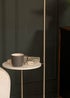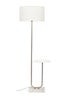 Add a contemporary element to your decor with this dual function floor lamp. Featuring a curved brushed chrome metal stem with a solid marble table which is ideal for displaying ornaments, pictures and other decorative items. This lamp can be placed into the corner of the room providing you a large space saving solution whilst also making it look attractive and decorative. This practical but stylish light has a braided flex with an in-line on/off foot switch for easy use. This lamp is easy to assemble, making it simple to enjoy your new lighting addition. Complete with a large lampshade. Requires 1 x LED 6W ES E27 bulb (not included).