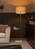 ValueLights Tavel Brushed Silver Floor Lamp White Shade (132.5cm x 30cm x 37cm)