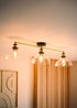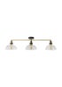 This ceiling light bar comes in a gold and black metal finish with three clear glass shades. This steampunk design light fitting is ideal for over a table or as a statement light. It is perfect for adding an industrial design to any room in your home. Requires 3 x LED 4W ES E27 bulbs (not included).