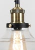 This contemporary ceiling light fitting is a great way of bringing an industrial edge to any room of your home. Finished in an antique brass effect finish with black accents and a clear glass shade. Requires 1 x LED 4W ES E27 bulb (not included).