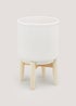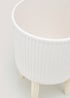 White Ribbed Ceramic Planter with Wood Stand (35cm x 18cm)