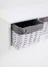 Learn moreMake the most of your space with this stylish storage unit. Designed to be hung on the wall to help reduce clutter on your floors and shelves, the storage unit is styled in white and comes with three removable woven storage baskets and metal hanging pegs. Ideal for busy hallways and cosy bedrooms. Dimensions: 75cm x 25cm x 38cm.