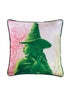 Add a touch of magic to any living space with this officially licensed Wicked cushion. This cushion has piped edging giving it a refined look as well as featuring the iconic characters, Elphaba and Glinda in a vibrant pink and green reversible design. Approx size 35 x 35 cm. 100% Cotton. Spot clean only.