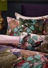 This beautifully designed printed velvet duvet set adds a touch of the tropics to your bedroom. Featuring hand painted, printed exotic birds, perched on lush tropical plants, against a vivid blush background; this duvet will bring life to your home as soon as it is placed on the bed. The reverse is a rich plain mauve colour, which helps to make this duvet set a fantastic addition to your bedding collection.