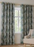 Wylder Nature Ophelia Floral Jacquard Room Darkening Eyelet Curtain Pair Thyme/Mineral