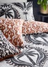 Hazy days and hot nights come together in this bold bedset. Paired with a luxe bohemian interior, Laucala is the perfect print to bring the holiday into the home. Featuring a unique tropical design highlighting the iconic Palm Tree, this duvet set is complete with an abstract geometric reverse in a complementary terracotta colourway.