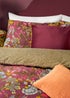 This exotic contemporary floral, inspired by the arts and crafts movement, captures an essence of escapism and mystique. Blending a rich palette of colours with intriguing flowers, patterns, and shapes perfectly encapsulates the essence of Wylder Tropics. Complete with a spotted tonal reverse, providing you with two distinct looks for a midweek refresh. This duvet cover is printed on a soft cotton-rich fabric with a textured slub finish, giving it a relaxed look that will last.