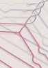 Stock up on handy wardrobe essentials with this pack of 5 hangers for kids. Made with practical wire in pink and grey to keep clothes in place and prevent slipping, they're an easy way to keep their outfits organised. More colours available. Dimensions: 39.5cm x 18cm x 5cm.