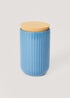 Keep your favourite food nice and fresh with this trusty canister. Featuring a super stylish ribbed design in blue, it comes complete with a sturdy cork lid to minimise the risk of your items going stale. Incredibly practical, its simple yet charming appearance ensures it'll effortlessly blend into many kitchen areas. Part of the Shelter trend. Dimensions: W11cm x H17.5cm.