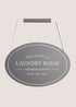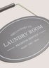 Learn moreAdd some charm and character to your laundry room with this Laundry Co Sign. This sign is made of metal and has a grey oval frame with the words with beautiful embroidery in white. It has a metal frame with a grey wooden handle that allows you to hang it on the wall or a door. This Laundry Co Sign is a lovely way to decorate your laundry room and make it more inviting.