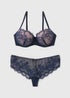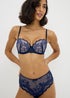 Turn up the charm with this navy lace co-ord bra and knicker set. Designed with delicate lace detailing and a flattering fit, this matching set combines beauty and comfort in one effortlessly chic package. Whether it’s for everyday wear or a special occasion, the soft, supportive bra and coordinating knickers are made to make you feel as good as you look.