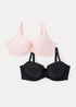 DD+ 2 Pack Black & Pink Padded Textured Bras
