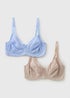 Designed with fuller busts in mind, this 2 Pack of DD+ Blue & Nude Lace Bras combines everyday support with elegant style. Featuring beautifully detailed lace and underwired cups, these bras offer a secure, flattering fit without compromising on comfort.