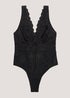 Spruce up your underwear collection with this fierce black bodysuit. Crafted with a figure-flattering V neck and featuring stunning lace detailing, it's finished with mesh fabric and a gorgeous wrap design at the back for extra comfort. Model Height: 5ft 10.