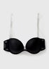 The Black Clear Strap Multiway Bra offers both lift and support with its underwired cups and light padding. Its traditional back strap is replaced by a simple clear band, cleverly hiding a hook-and-eye fastening on one side. Ideal for sheer fabrics and low-back cuts, this versatile bra ensures comfort and style.