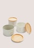 - Make the most of the space you've got with this stylish tea, coffee, and sugar canister set. Ideal for smaller kitchens, the set is styled in varying neutral tones for a versatile finish, and each canister comes complete with a bamboo lid for extra sustainability points. Designed to stack neatly one on top of the other, the set is sure to slot perfectly into kitchens of any size. Dimensions (when stacked together): H27cm x W13.5cm.