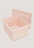 Learn moreKeep clothing and home accessories neatly stored away with this handy storage box. Crafted from durable pink plastic with a rattan-effect lid, it's the ideal way to get clutter under control. Capacity: 27 Litres.