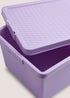 Learn moreAdd a stylish storage solution to your space with this 27L storage box. In a fresh purple hue, it's designed with a woven rattan finish for a chic look that complements any interior. Featuring a lid to help keep your belongings free from dust and out of sight, it's perfect for storing anything from towels and bedding to toys and crafting essentials. Dimensions: 45cm x 36cm x 23cm.
