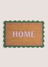 Step into the comfort of your home with our Scalloped Shaped Mat. This charming mat features a warm beige hue with the word “HOME” in welcoming white letters, set against a scalloped silhouette outlined in a refreshing green. Durable and designed to trap dirt, it’s not just a mat but a statement of elegance for your doorstep.