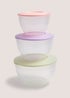 This set of 3 mixing bowls is perfect for all your baking needs. Coming in different sizes, each bowl is finished with a colourful lid for easy storage.