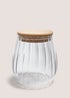 Keep your kitchen, bathroom or bedroom essentials handy with this gorgeous glass jar. Crafted with a sleek curved design, it features a flat cork lid adding a rustic vibe into your home. Constructed with a stylish ribbed glass, it's perfect for little treats, bobbles and more. Dimensions: 10cm x 8cm.