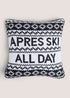 Bring alpine vibes to your home with the Black Après Ski All Day Cushion. Featuring bold white lettering on a classic black base, this soft and comfy cushion is perfect for adding a fun, winter-ready touch to your sofa, chair, or bed.