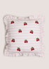 Add a touch of playful charm and delightful texture to any room with this exquisite Pink Cherry Embroidered Frill Edge Cushion! This cushion is the perfect accent piece for a sofa, armchair, or bed, bringing a fresh, whimsical, and handcrafted feel to your decor.