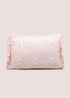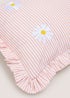 Pink Stripe Daisy Embroidered Frill Edge Cushion