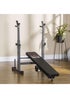 Train at home effortlessly with the HOMCOM weight bench with a rack. Great for upper body workouts like bench presses, push-ups, dips, rows and more. The barbell rack offers eight adjustable positions for your comfort. The padded bench, with soft foam, ensures maximum comfort. Once you're done, simply fold and store it away to save space – suitable for homes with limited room. Stay fit and strong from the comfort of your home – no gym required!Upper body workout: Suitable for bench pressing, push ups, single-arm dumbbell rows, tricep dips, abdominal training and more. Great strength training equipment for building muscle and improving fitness.