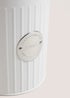Crafted with precision, this storage tin is your perfect kitchen companion for keeping your essentials organized and fresh. Its white hue radiates cleanliness while the ribbed design adds a touch of sophistication. The snug lid ensures your contents stay fresh and aromatic. Adorned with a silver badge that spells quality, this tin is not just storage but an addition to your kitchen's aesthetic.