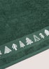 Charmingly detailed with lovely trees, this super festive hand towel is a must this winter. With a classic green velour base and fashioned with a woven border, it's a simple must for the build-up to Christmas.