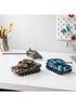 It’s time to do battle in the most epic style with the Battle Tanks Twin Pack! Engage in high-tech laser tag warfare by pitting your tank against your friends or foes in a thrilling game of skill and strategy. Both tanks offer 360-degree movement and operate on different frequencies, adding a competitive edge to your gameplay. Control your tank from up to 15 meters away and fire up to 10 meters to defeat your opponent. Each tank has four lives, and realistic sounds and shudders will alert you when you’re hit. After four hits, your tank will disable, so aim carefully and strike first! The tanks feature LED indicators for added visual effects and to deceive your opponent. Perfect for kids at Christmas or any time of year, this gift is sure to be a hit. Get yours today and gear up for some epic tank battles!