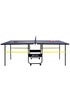 This foldable table tennis table is ideal for any home, garage or youth club. The table can be folded together for easy storage, making it easy to move. Perfect for challenging friends and family or simply improving your table tennis skills. With a playback facility, one half of the table can be folded down, so that you can perfect your table tennis skills on your own. Includes: Table tennis table 2x bats 3x balls 1x net Materials: Melamine coated surface MDF table (leg stoppers prevent floor damage) Steel frame construction Dimensions: H76 x L206.5 x W115cm Folded: H154.5 x L115 x W55cm Weights: 30kg Some self-assembly required. Full instructions provided.